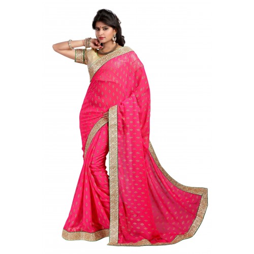 Triveni Wonderful Pink Colored Border Worked Chiffon Saree